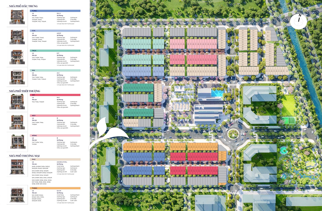 Dự án có 4 dòng sản phẩm chính gồm căn hộ, nhà phố, biệt thự và shophouse, đáp ứng nhu cầu an cư của nhiều nhóm khách hàng với lối sống và tài chính khác nhau. Sự đa dạng này không phải là lẩu thập cẩm, mà là sự tính toán kỹ lưỡng để tạo ra một cộng đồng dân cư cân bằng, bổ trợ lẫn nhau giữa sức trẻ, sự ổn định và giới thượng lưu.